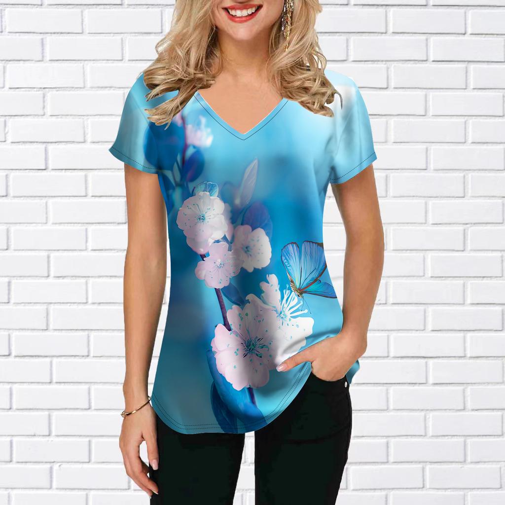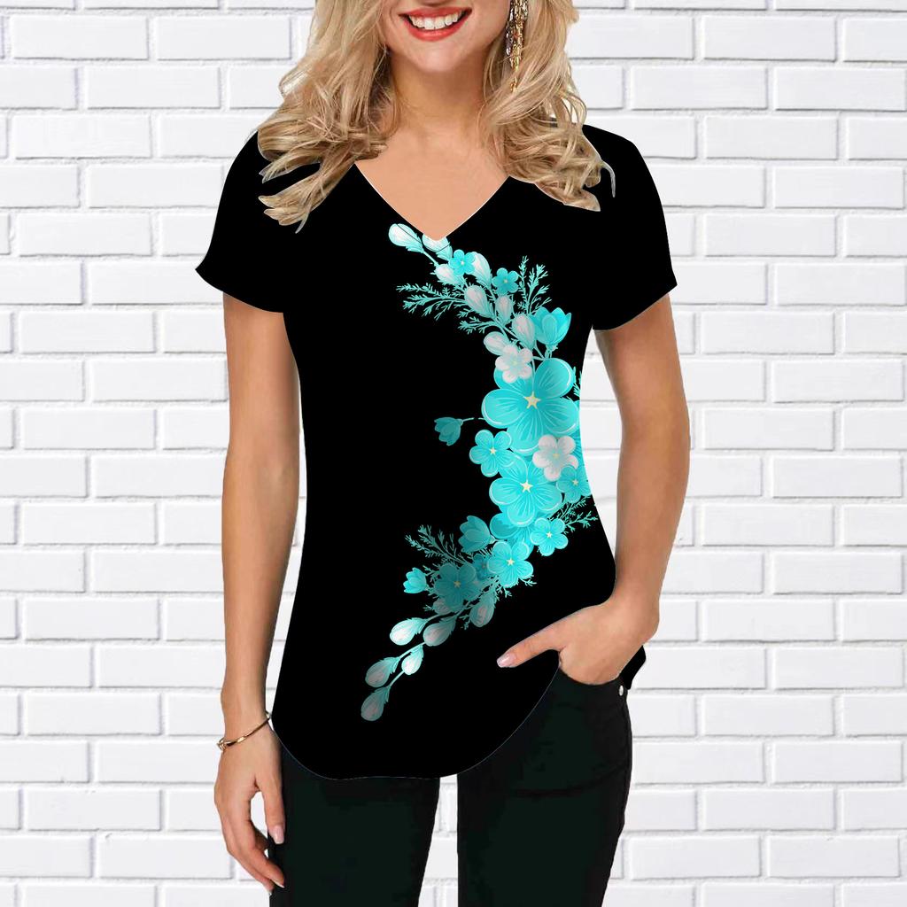 Женские топы с v-образным вырезом и короткими рукавами, подсолнечник, лотос, пруд, свободная футболка, повседневная блузка