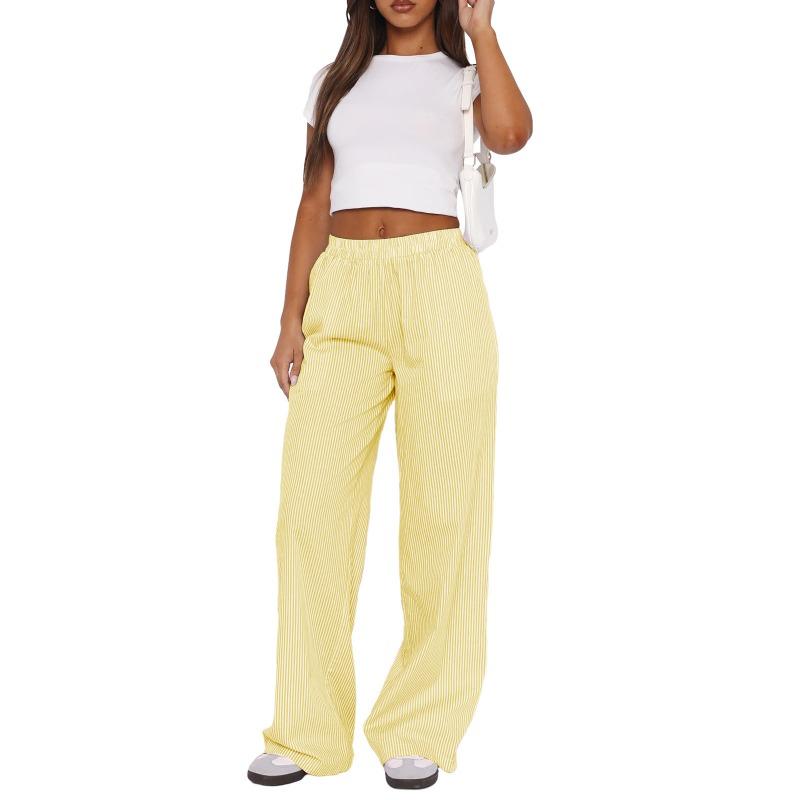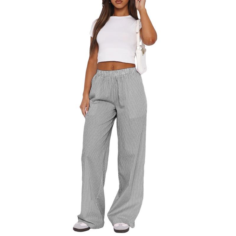 Весенне-летние женские брюки в полоску, широкие брюки, повседневные уличные модные свободные брюки с высокой талией