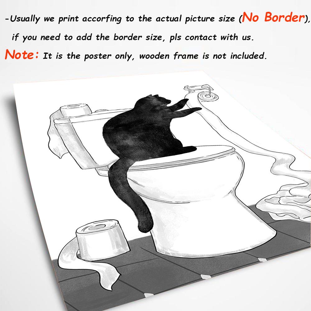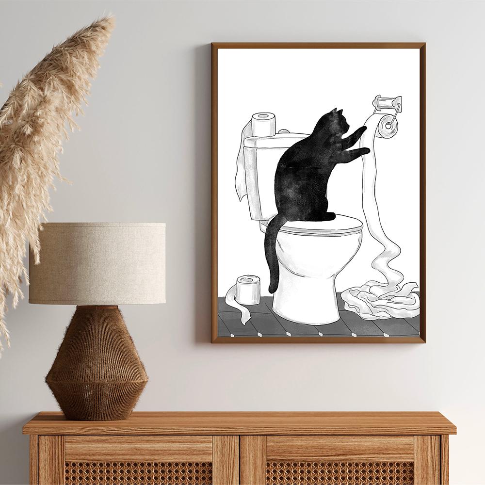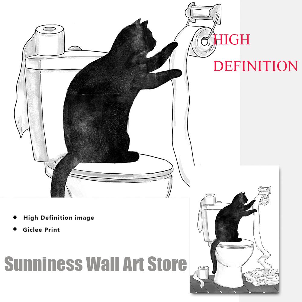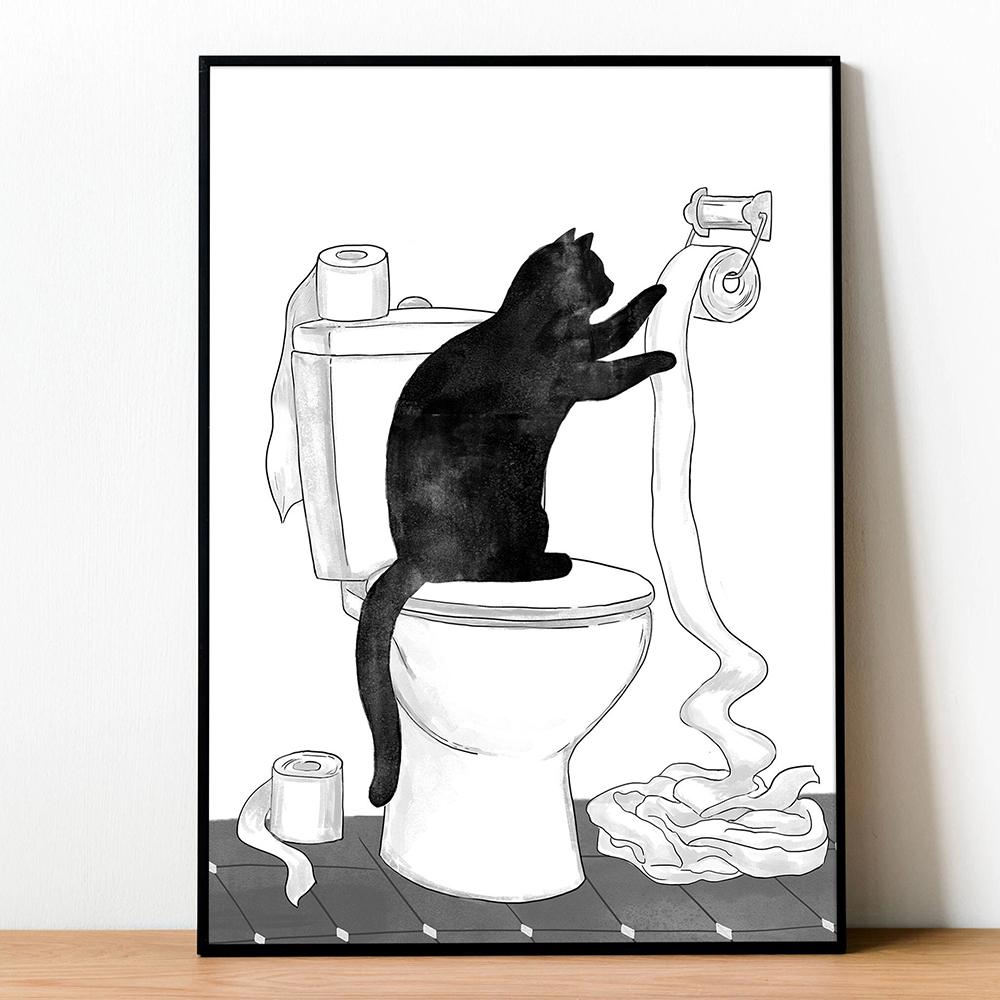 Плакаты с изображением черного кота и животного для туалета, украшение для дома, максималистический принт, подарок для любителей кошек, фото для ванной комнаты, домашний декор