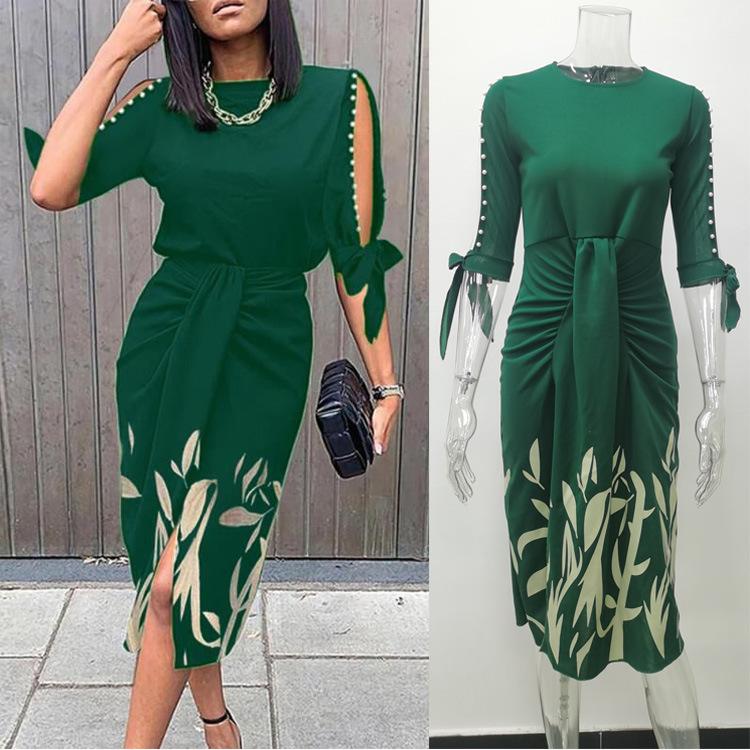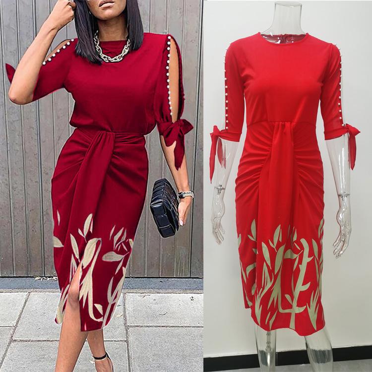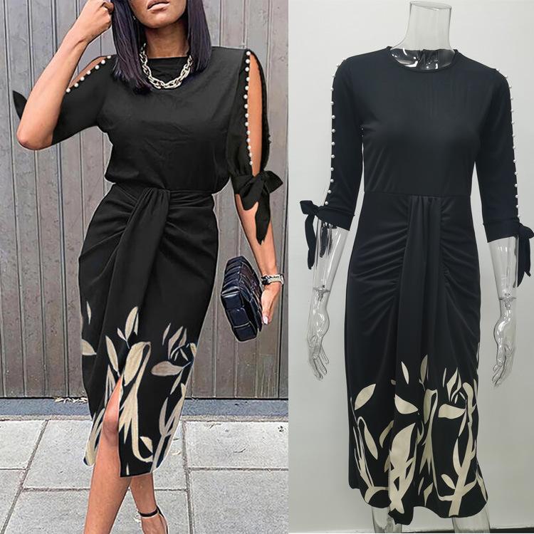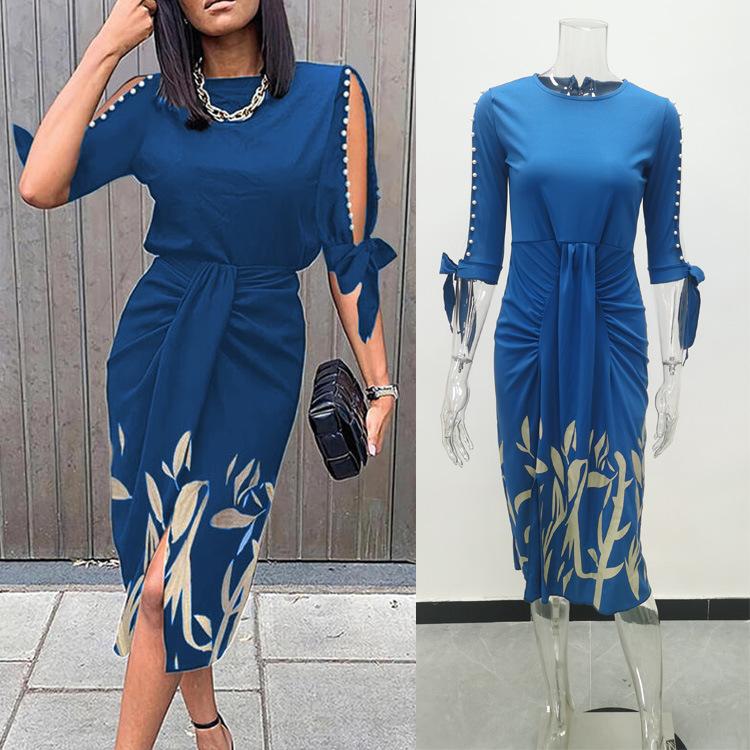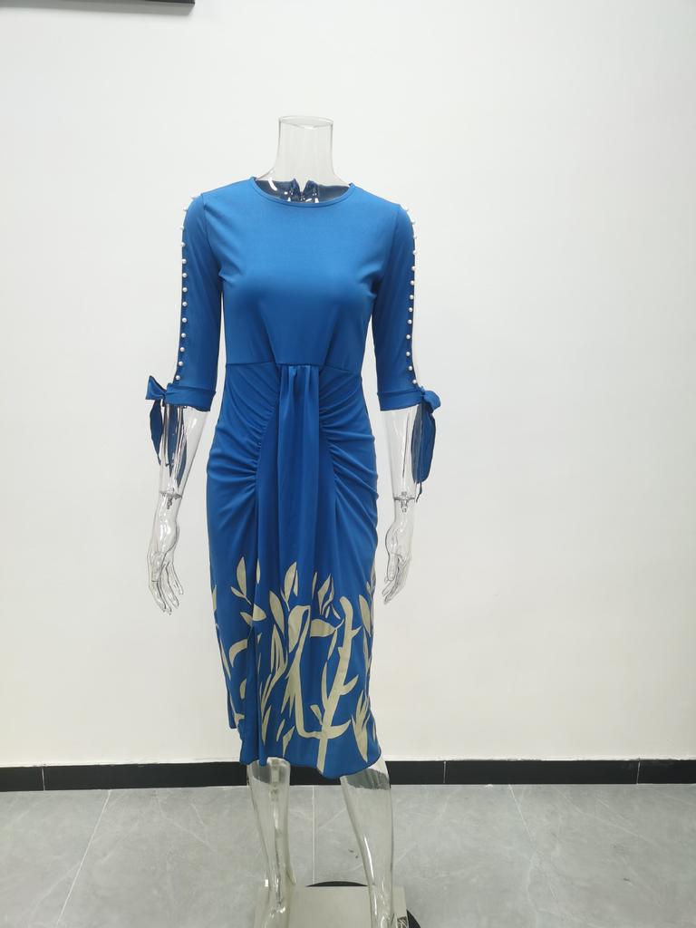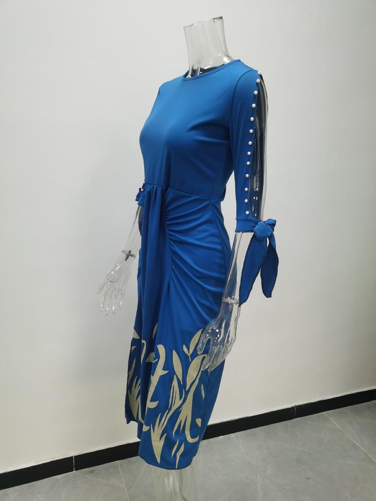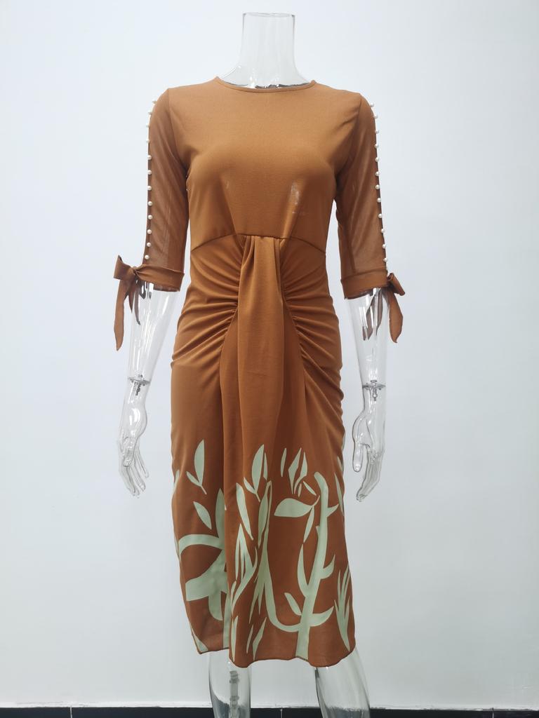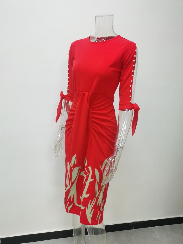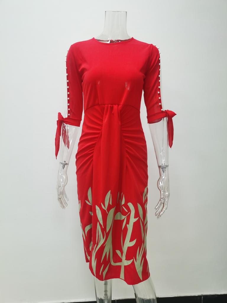 Весенне-осеннее сексуальное плиссированное платье со шнуровкой и принтом, модная элегантная женская одежда
