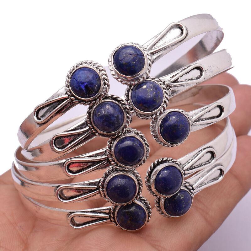Lapis Lazuli Gemstone 925 Sterling Silver Plated 5 PCs Cuff Bangle VI-46