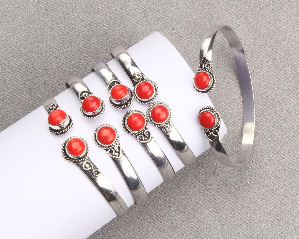Coral Gemstone 925 Sterling Silver Plated 5 PCs Cuff Bangle VI-57 — купить товар онлайн с бесплатной доставкой по всему миру!