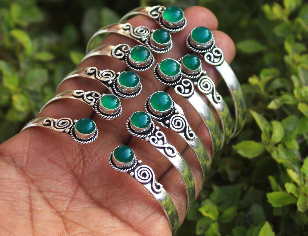 Green Onyx Gemstone 925 Sterling Silver Plated 10 PCs Cuff Bangle VI-92 — купить товар онлайн с бесплатной доставкой по всему миру!