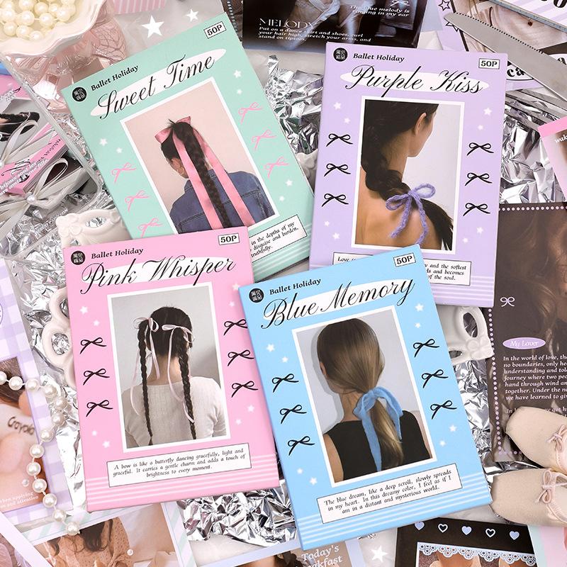 50 листов сладкий шикарный корейский стикер для скрапбукинга для девочек, кружевной балетный галстук-бабочка, серия, стикер для журнала, DIY Декор, канцелярские наклейки