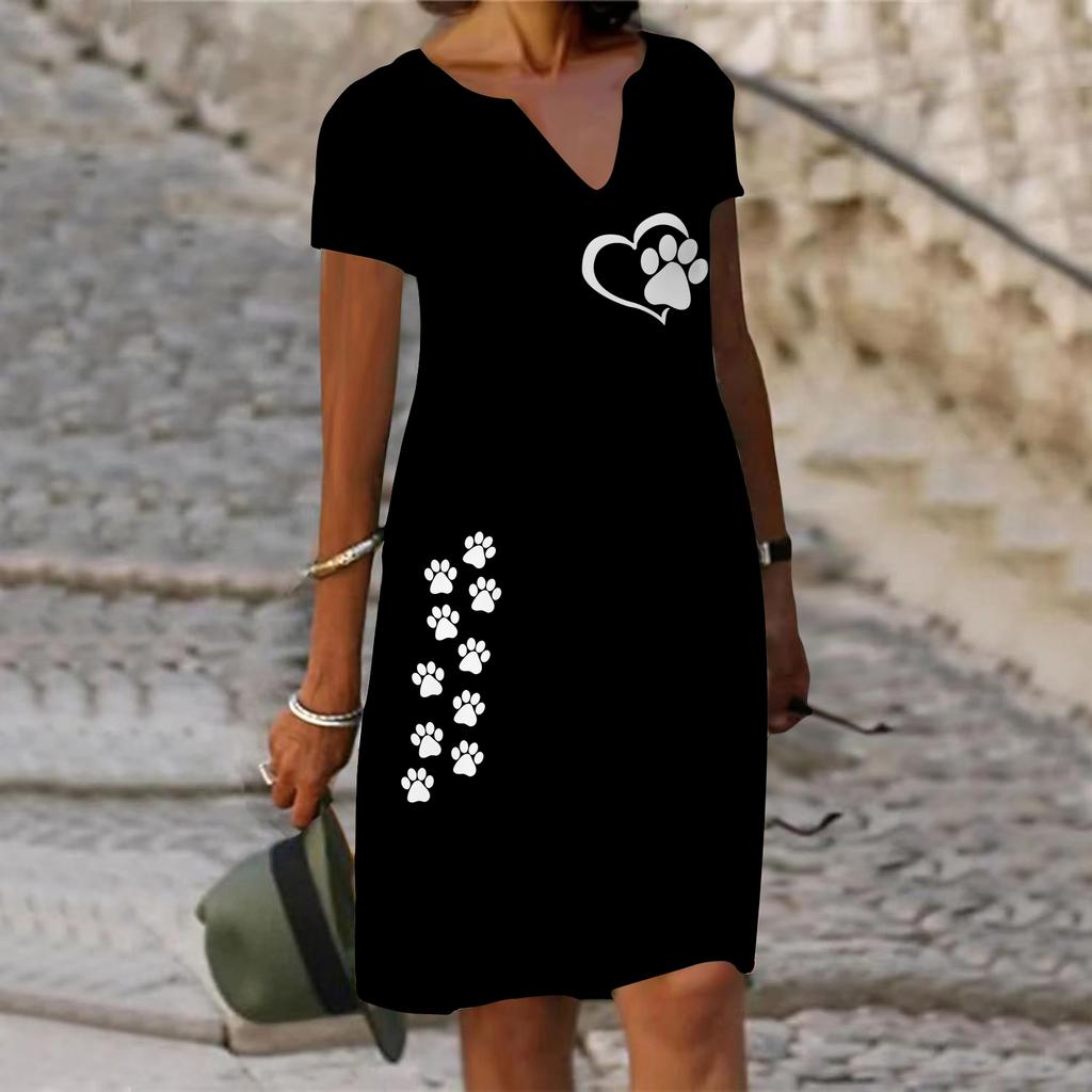 Летнее модное платье с v-образным вырезом, женское белое платье с коротким рукавом и принтом «Любовь», свободное повседневное платье для женщин