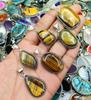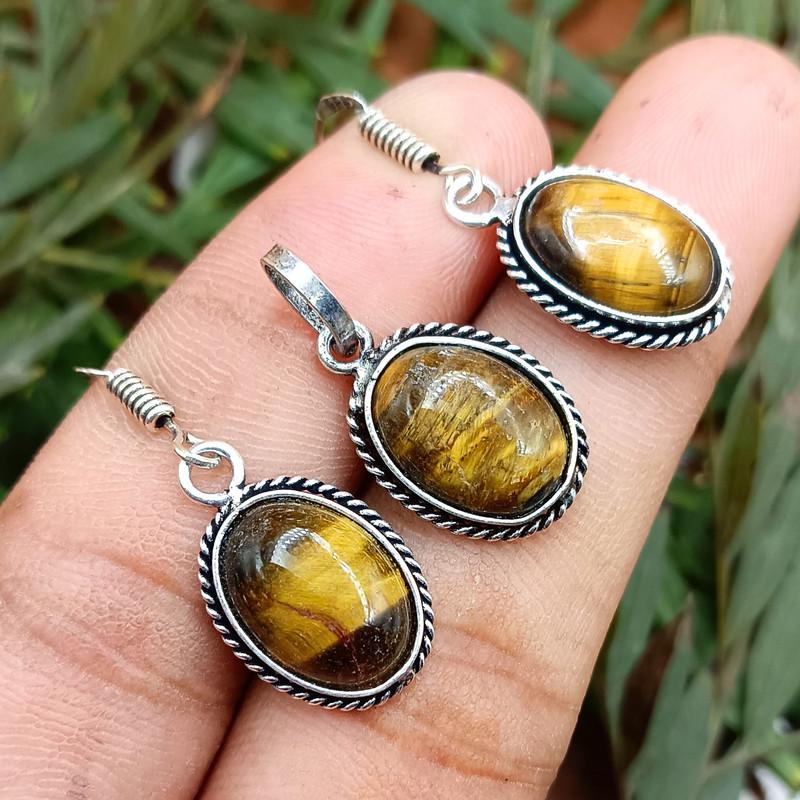 Calming Tiger's Eye Gemstone 925 Sterling Silver Plated Unisex Earring & Pendant Set OM-30