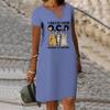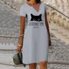 Летнее модное платье с v-образным вырезом, женское платье с короткими рукавами и принтом кошек, свободное повседневное платье для женщин