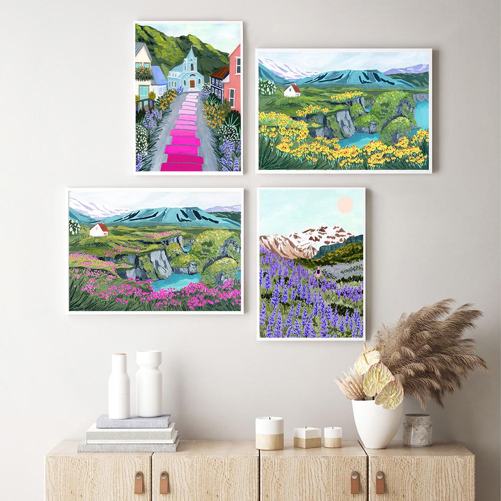 Плакат с путешествием по Исландии, картина на холсте, красочный пейзаж высокогорья, долина горячих источников, настенная живопись для гостиной, домашнего декора