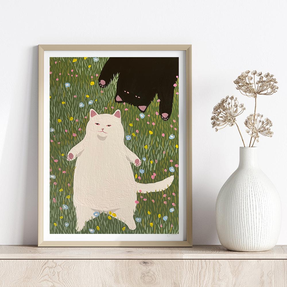 Абстрактное зеленое растение, цветок, черная кошка, настенная живопись на холсте, забавные постеры и принты, настенные панно для декора гостиной в стиле бохо
