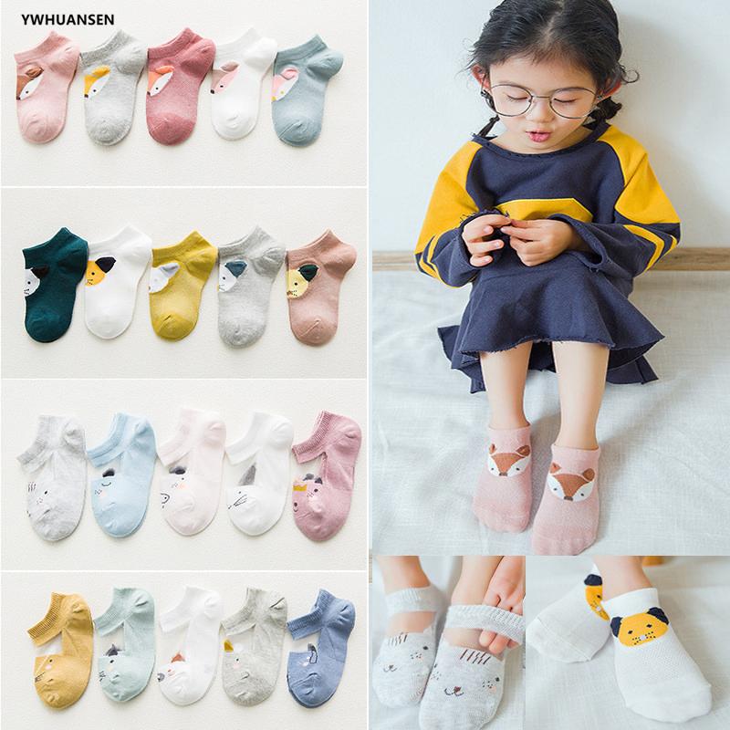 5 пар/лот, весенне-летние тонкие носки для девочек, детские хлопковые сетчатые носки-лодочки с милыми животными, дышащие носки до щиколотки для маленьких мальчиков