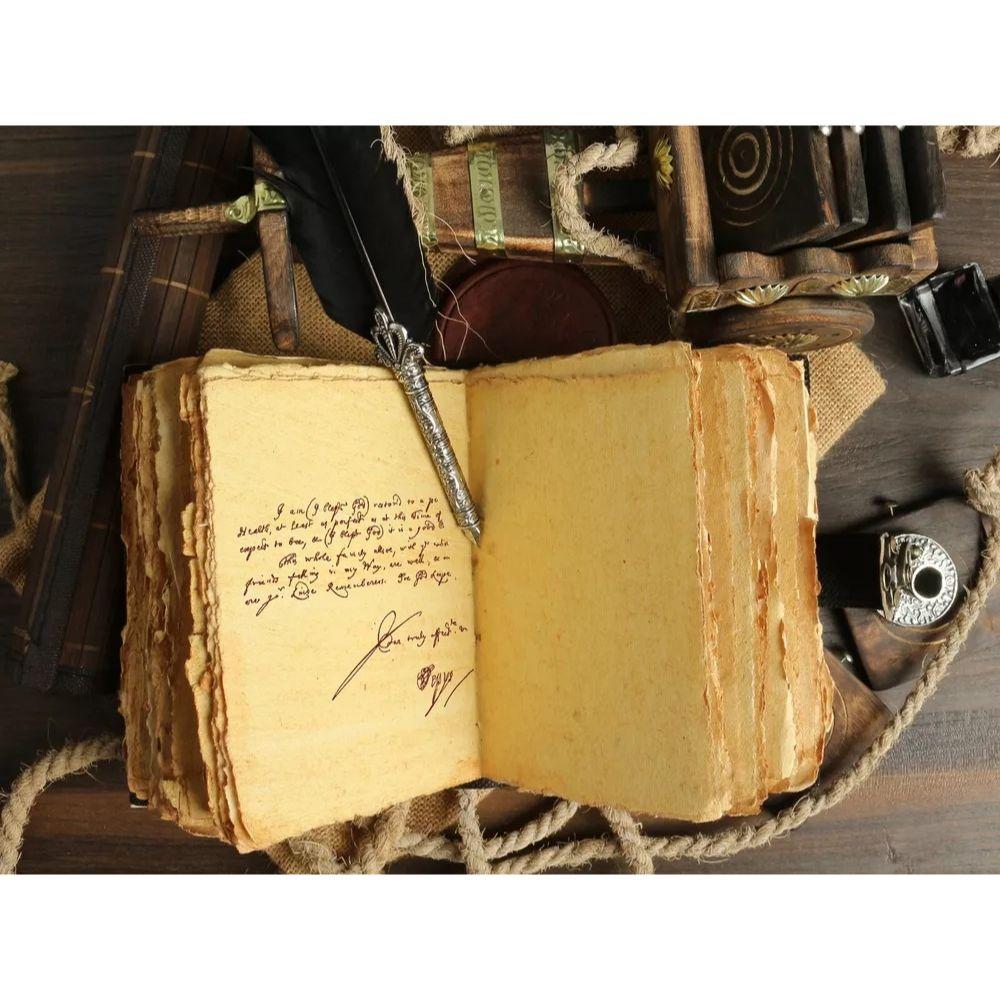 200 страниц плотной антикварной винтажной хлопчатобумажной бумаги, которой на вид тысяча лет.
