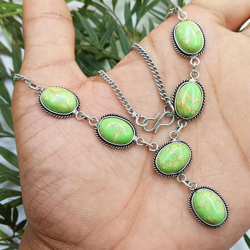 Green Turquoise Gemstone 925 Sterling Silver Plated Unisex Fashion Necklace SH-6