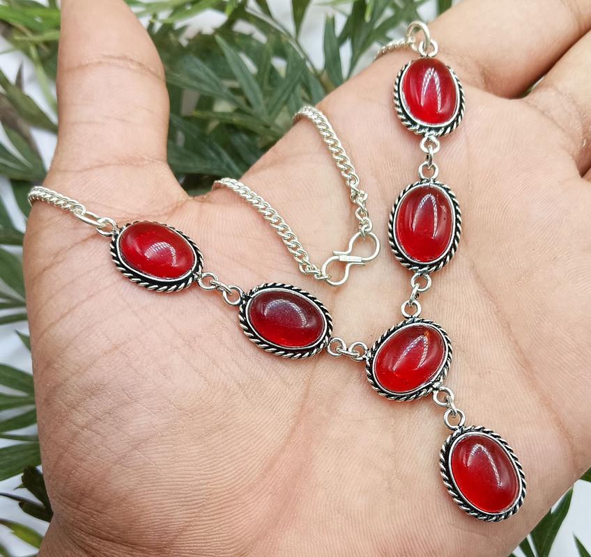 Гранат Драгоценный Камень 925 Стерлинговое Серебро Покрытое Унисекс Модное Ожерелье SH-76