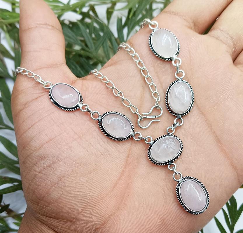 Rose Quartz Gemstone 925 Sterling Silver Plated Unisex Fashion Necklace SH-92