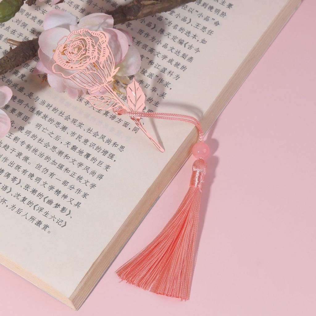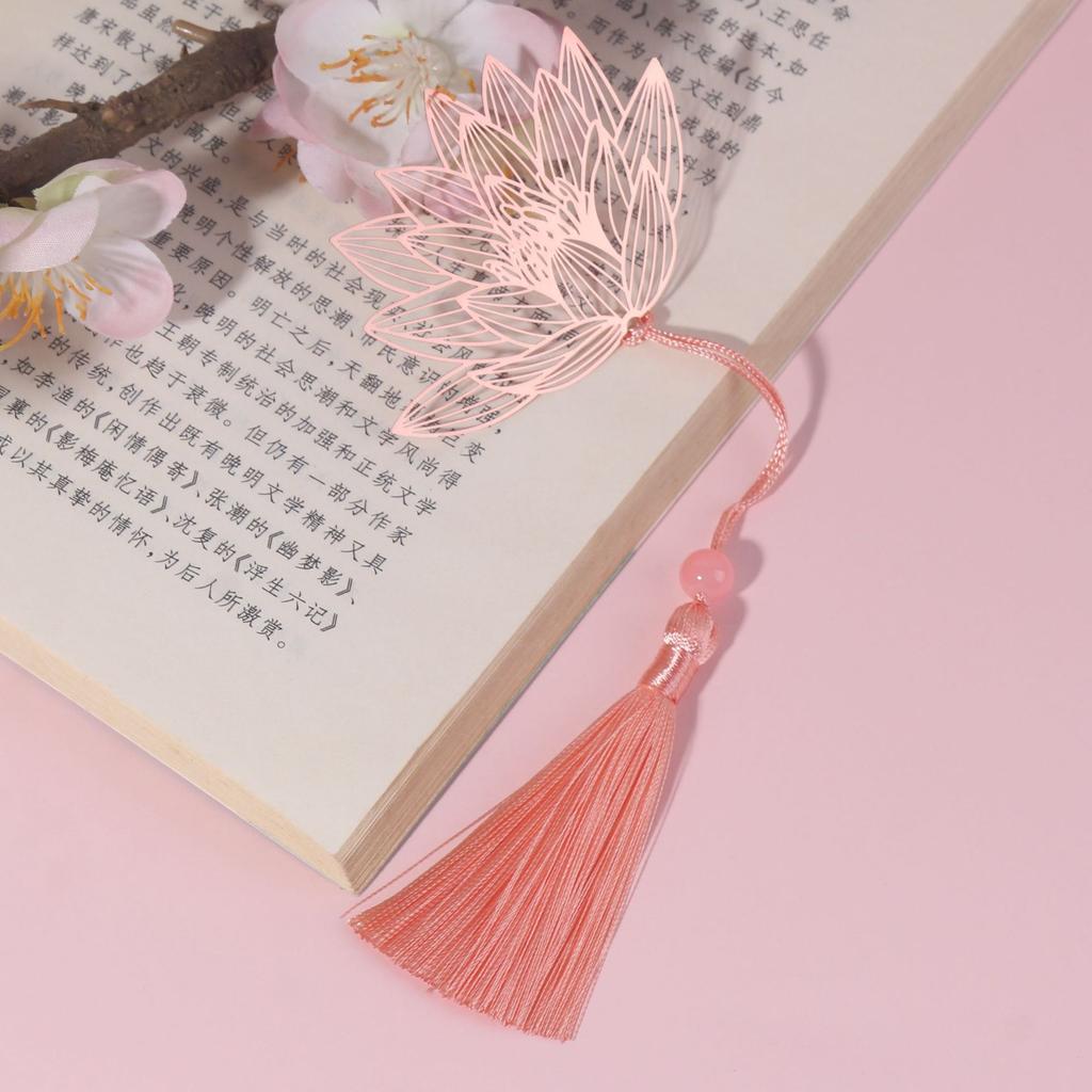 Креативная закладка для книг с росписью по металлу, китайский полый кленовый лист, бахромчатый абрикосовый лист, закладка для книг, подарки, латунная кисточка, школьные принадлежности