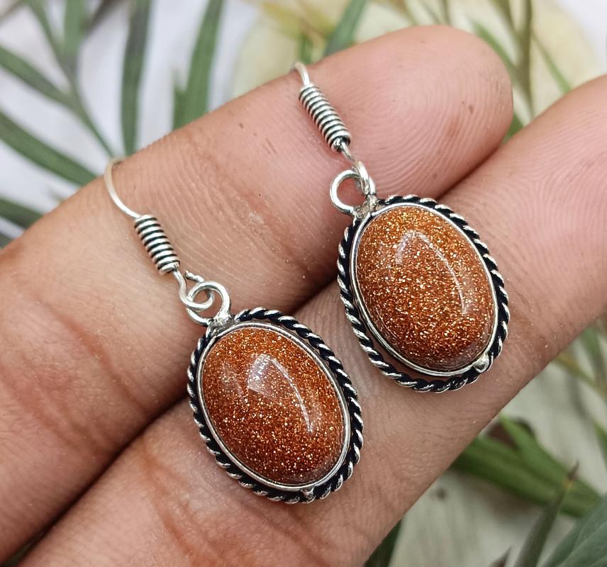 Sunstone Gemstone 925 Sterling Silver Plated Hook Earring VG-82
