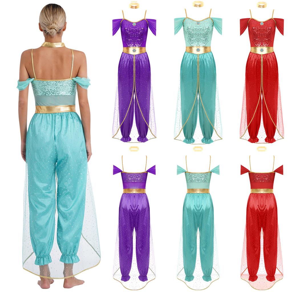 Женский костюм принцессы, комбинезон с блестками, длинные широкие брюки, карнавальный карнавальный костюм для вечеринки, танца, нарядное платье, наряд