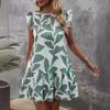 2024 Лето Свободные повседневные платья с рюшами и рукавами Женское короткое платье с круглым вырезом и принтом Женская мода Элегантное праздничное пляжное платье трапециевидной формы 24500