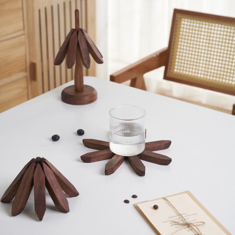 4 шт., подставка в виде дерева, деревянные подставки, декоративные противоожоговые термостойкие настольные коврики, деревянные салфетки, горшок