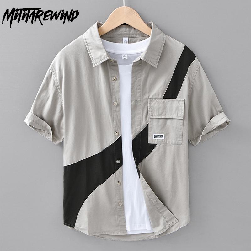 Летние модные мужские рубашки в японском стиле с коротким рукавом в стиле карго, уличная рубашка в стиле пэчворк, чистый хлопок, мягкие и удобные повседневные мужские топы