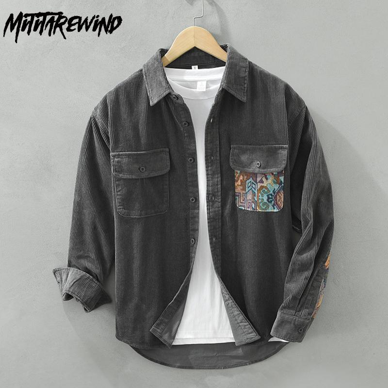 Рубашки с длинным рукавом в японском стиле в стиле ретро для мужчин, свободная вельветовая рубашка на осень и зиму, повседневные рубашки из чистого хлопка с двойными карманами и принтом — купить товар онлайн с бесплатной доставкой по всему миру!