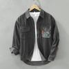 Рубашки с длинным рукавом в японском стиле в стиле ретро для мужчин, свободная вельветовая рубашка на осень и зиму, повседневные рубашки из чистого хлопка с двойными карманами и принтом