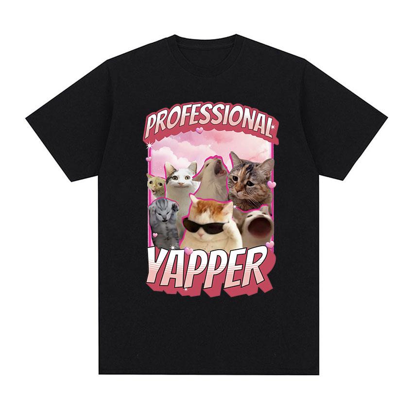 Забавная профессиональная футболка с рисунком Yapper Cat Meme для мужчин и женщин, повседневная модная футболка высокого качества, футболка большого размера из 100% хлопка