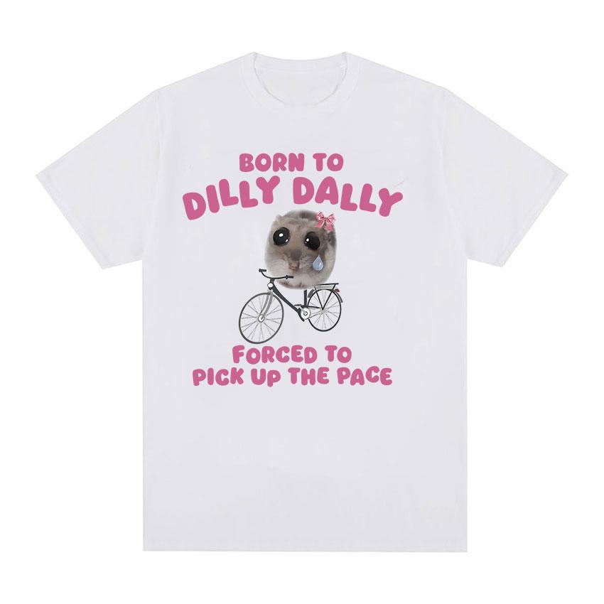Born To Dilly Dally Sad Hamster Забавные мем-футболки для мужчин и женщин, модная футболка с круглым вырезом и коротким рукавом, повседневная хлопковая футболка большого размера