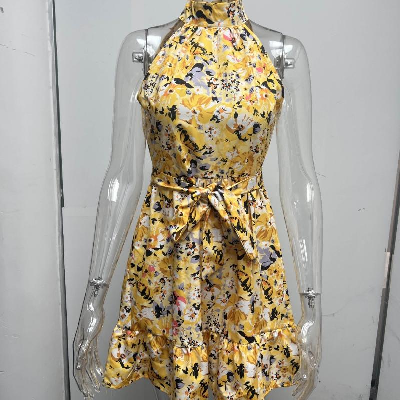 Платье без рукавов с цветочным принтом и принтом, женское летнее модное винтажное платье на шнуровке с высокой талией, женское элегантное облегающее повседневное платье трапециевидной формы 24502