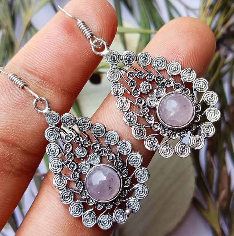 Rose Quartz Gemstone 925 Streling Silver Plated Bohemian Earring Jewelry HT-57