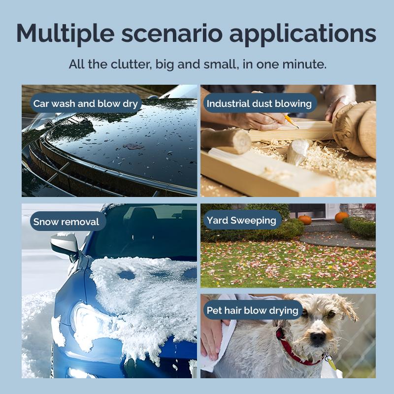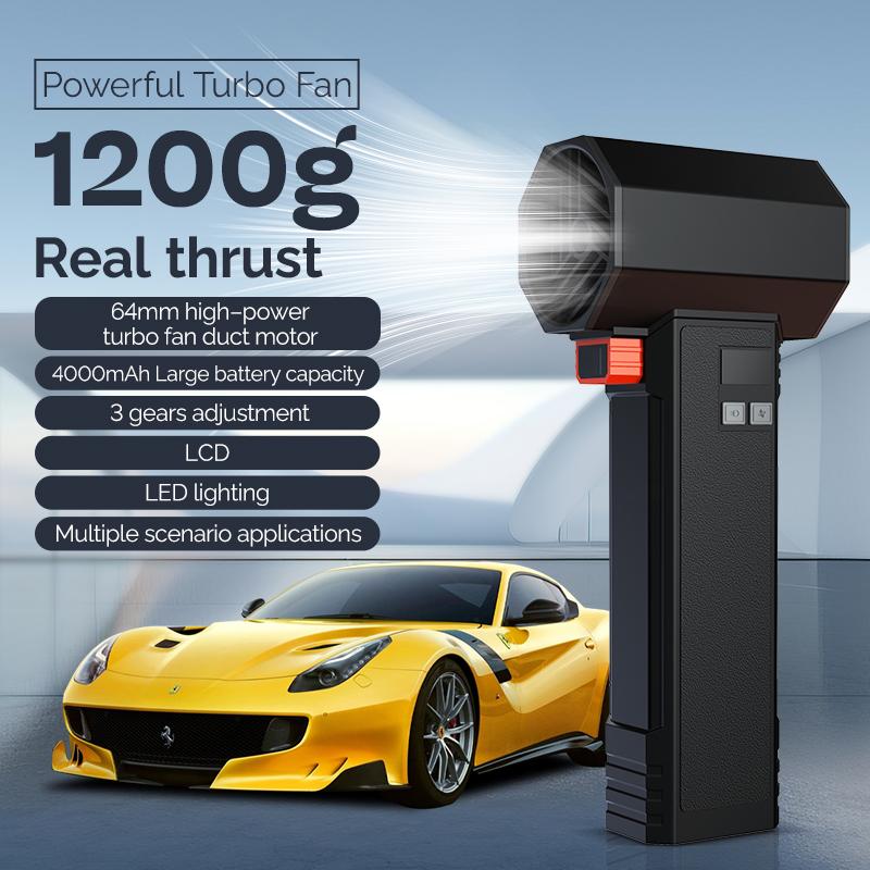 При использовании мощного турбовентиляторного двигателя диаметром 64 мм максимальная тяга 5 Вт в минуту составляет около 1,6 кг, а максимальный срок службы литиевой батареи емкостью 4000 мАч составляет около 80 минут, что позволяет легко справляться со сбором воды и сушкой различных транспортных средств.