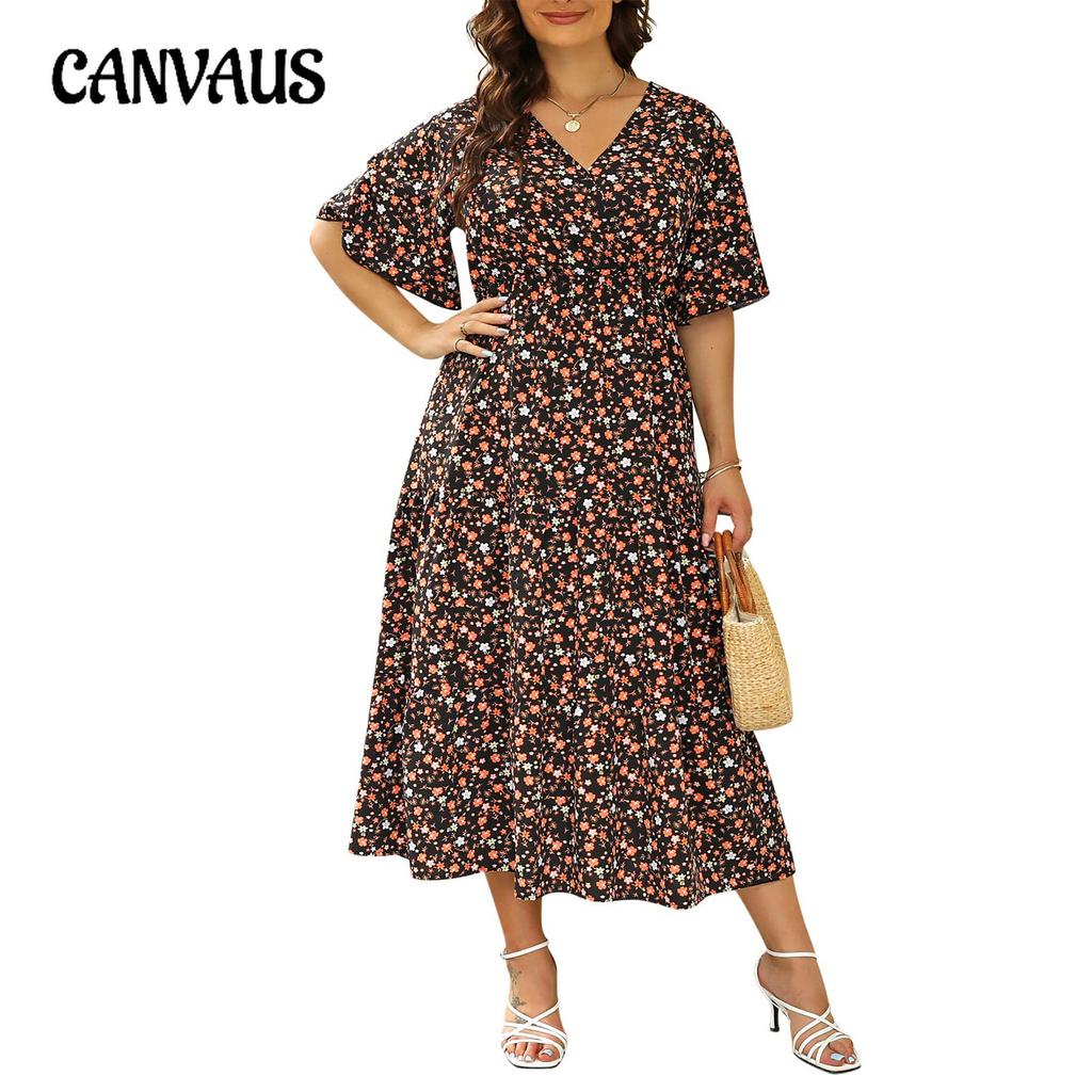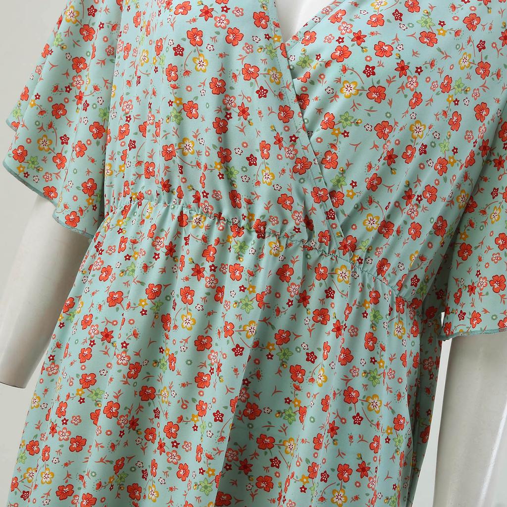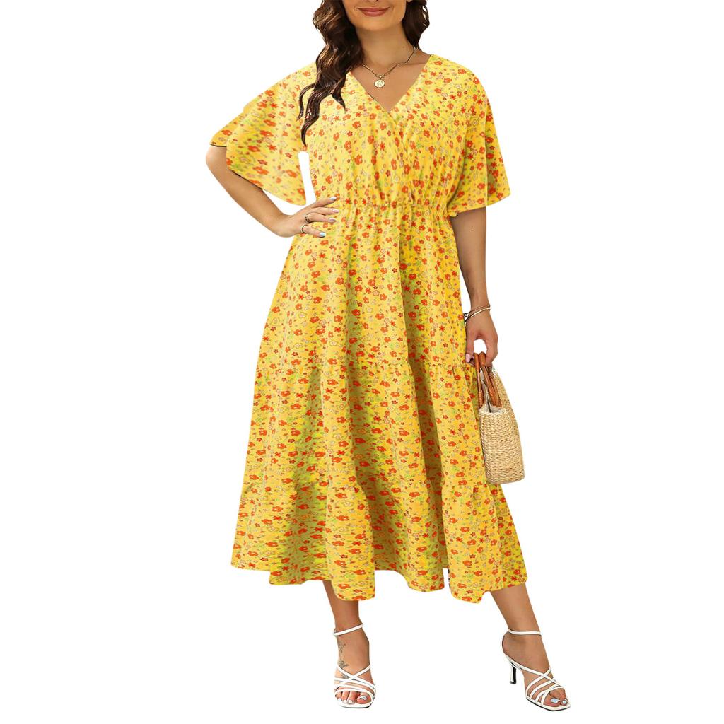 Летнее женское платье больших размеров с v-образным вырезом и цветочным принтом, платья с короткими рукавами, свободные длинные платья
