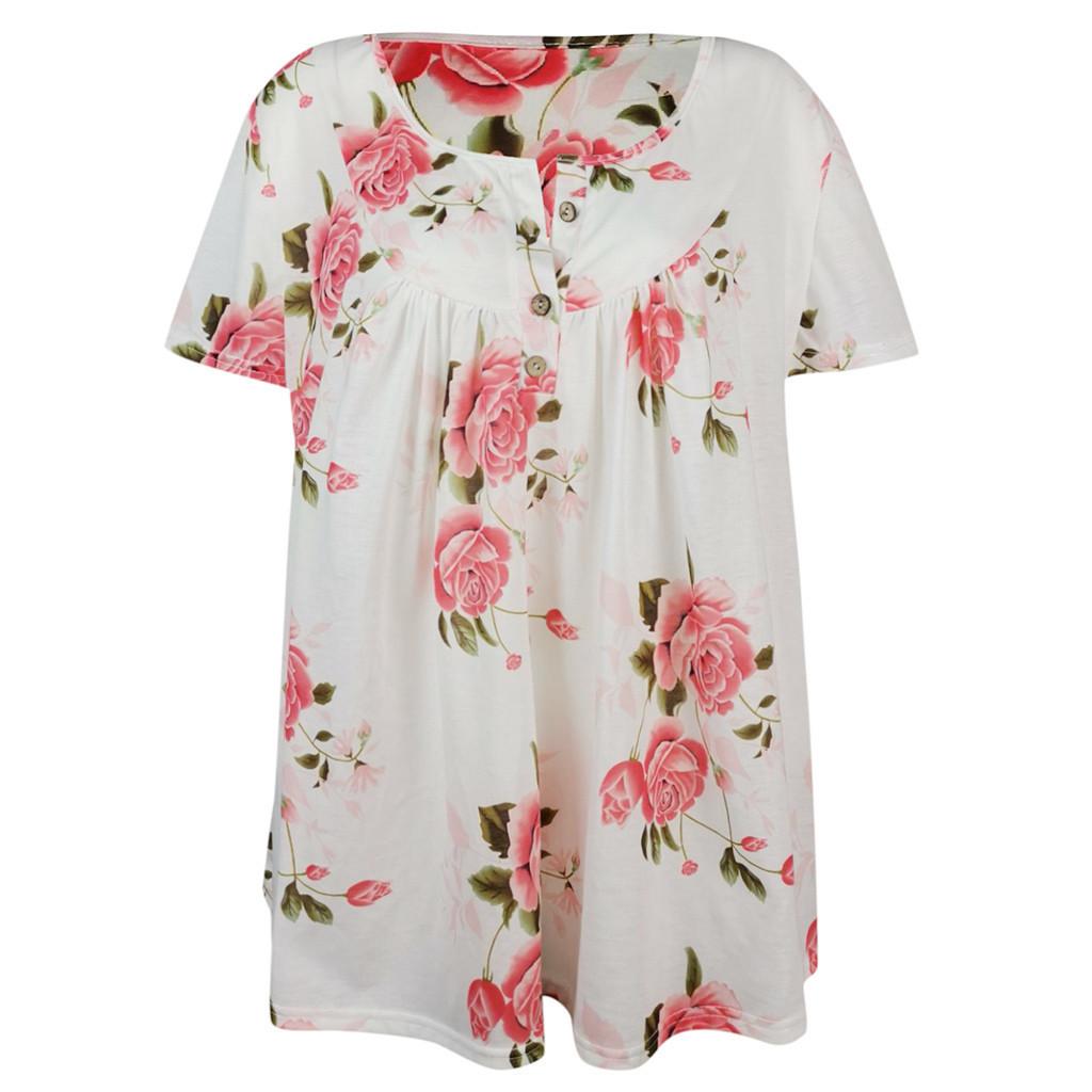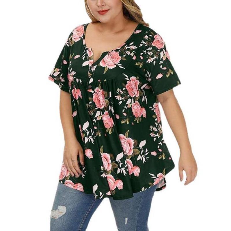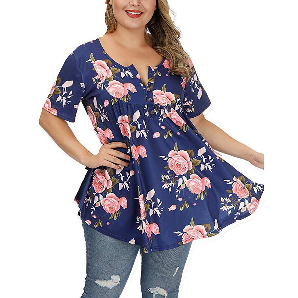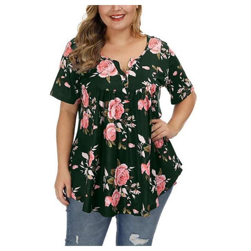 Летняя женская футболка с короткими рукавами и v-образным вырезом на пуговицах плюс размер футболка с принтом