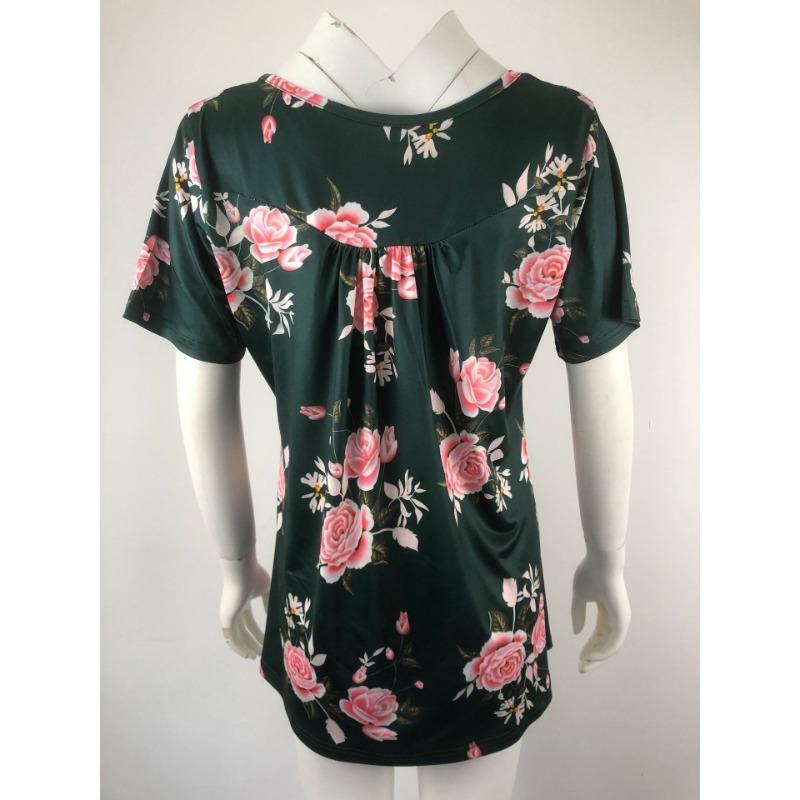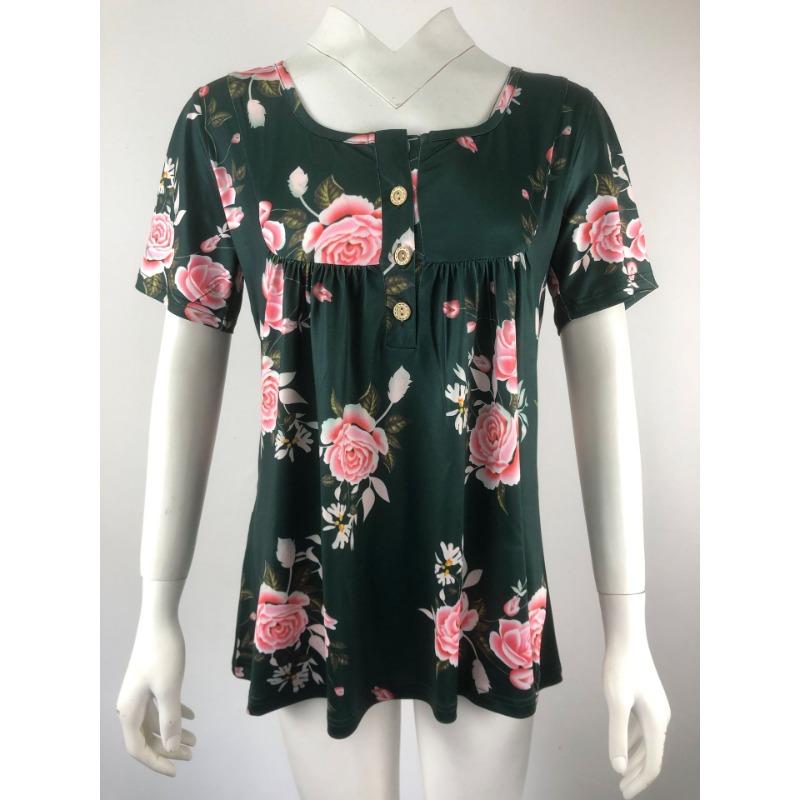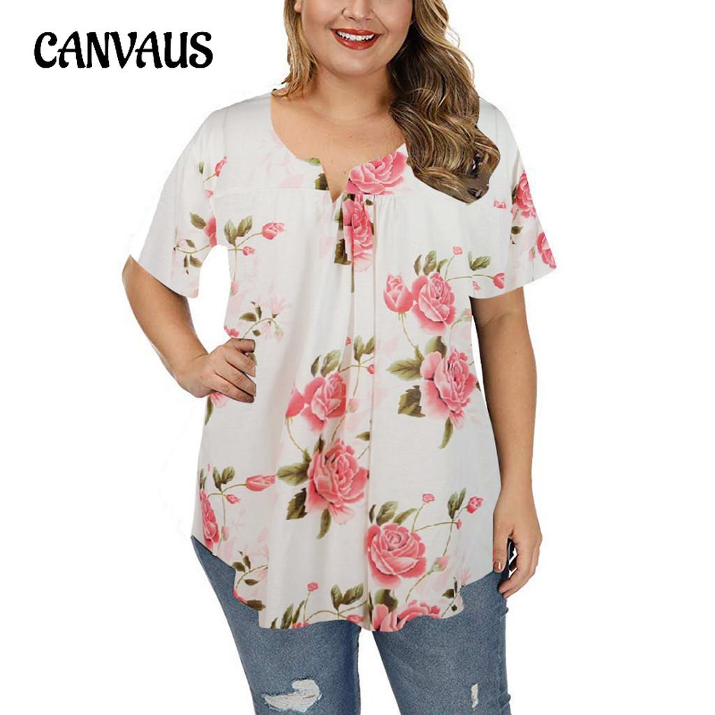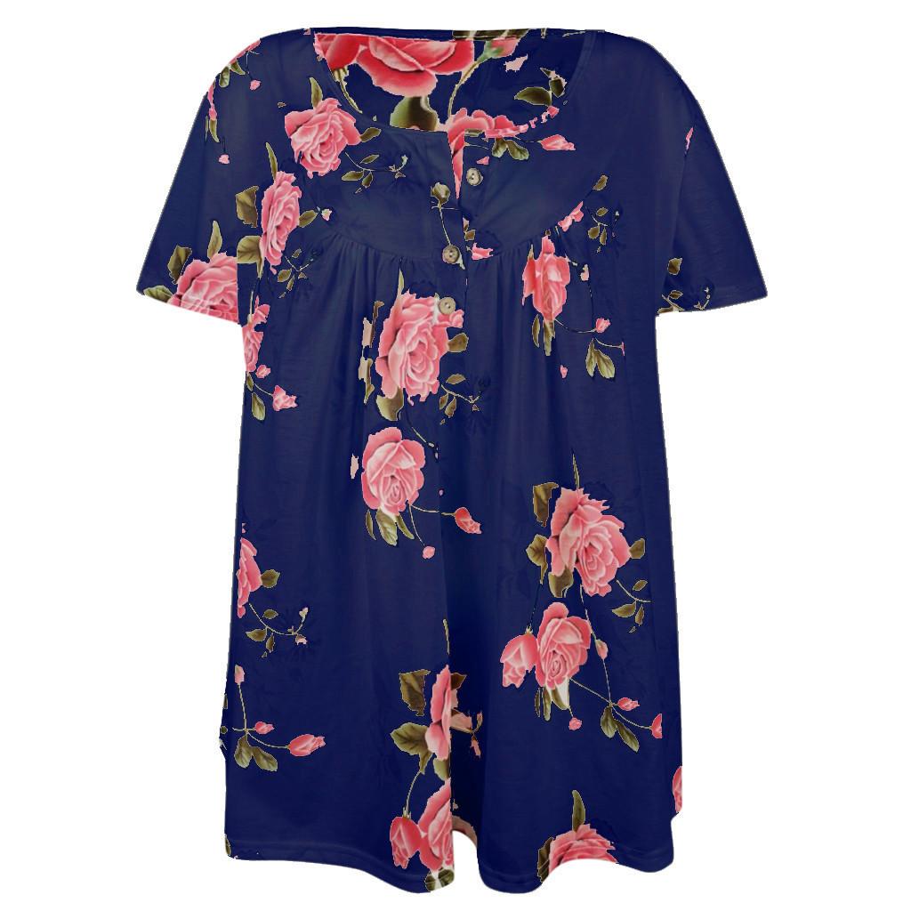Летняя женская футболка с короткими рукавами и v-образным вырезом на пуговицах плюс размер футболка с принтом
