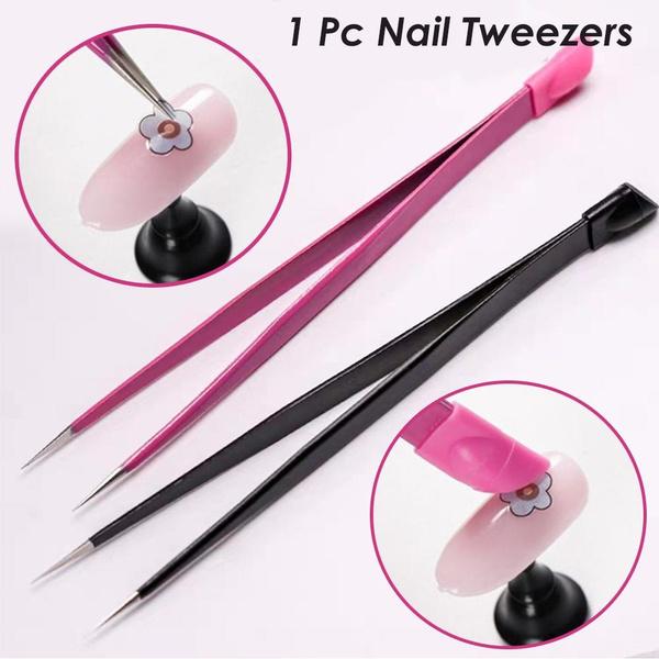 1 шт. пинцет для ногтей с силиконовой нажимной головкой для наклеек, набор страз, прямой изогнутый маникюрный инструмент для дизайна ногтей