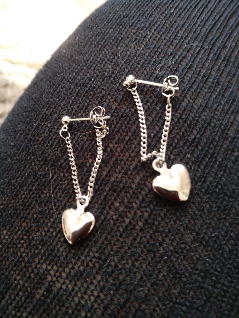 В описании написано что серёжки из стерлингового серебра, сердечки и цепочка да, застёжка гвоздики из металла