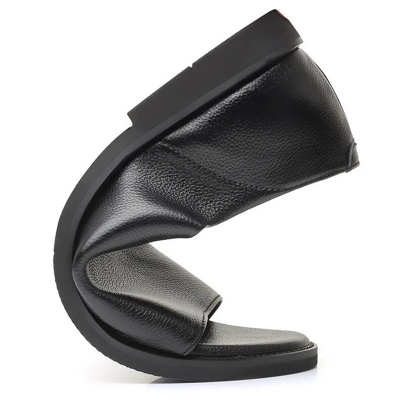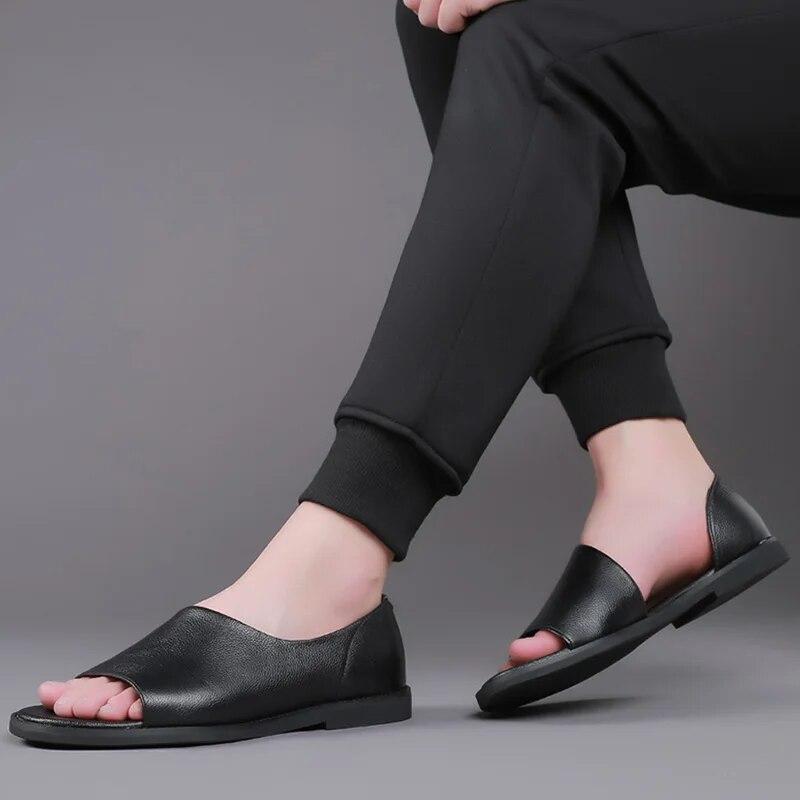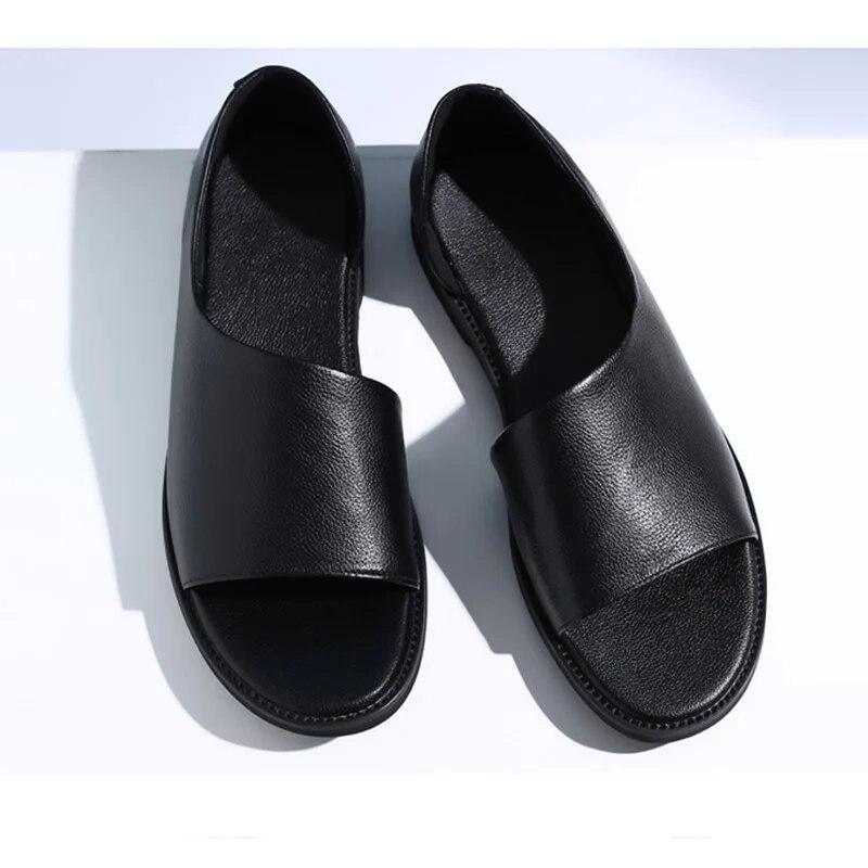 2024 летняя обувь из натуральной кожи, мужские сандалии, летние праздничные туфли на плоской подошве, нескользящая обувь из коровьей кожи, чистый черный цвет