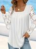 Осенняя женская мода, элегантная кружевная верхняя одежда с квадратным вырезом и длинными рукавами, сексуальные блузки, пуловер для отпуска
