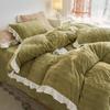 Зимнее постельное белье Комплект Молоко Бархат Загущенный Высококачественный Вышитый Коралловый Флис Двусторонний Фланель