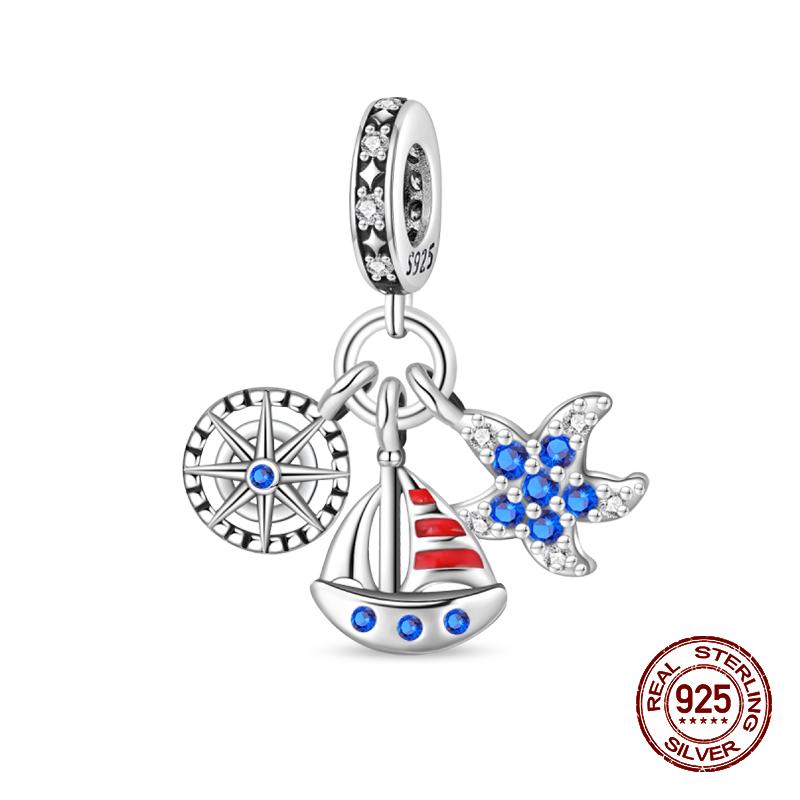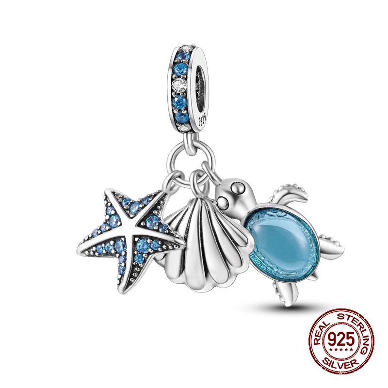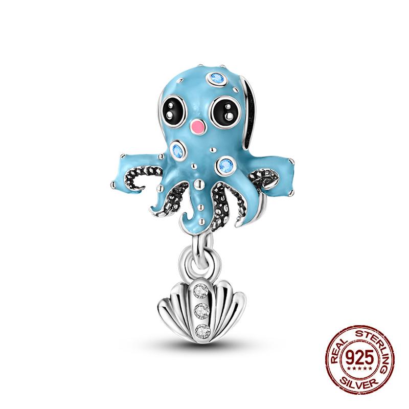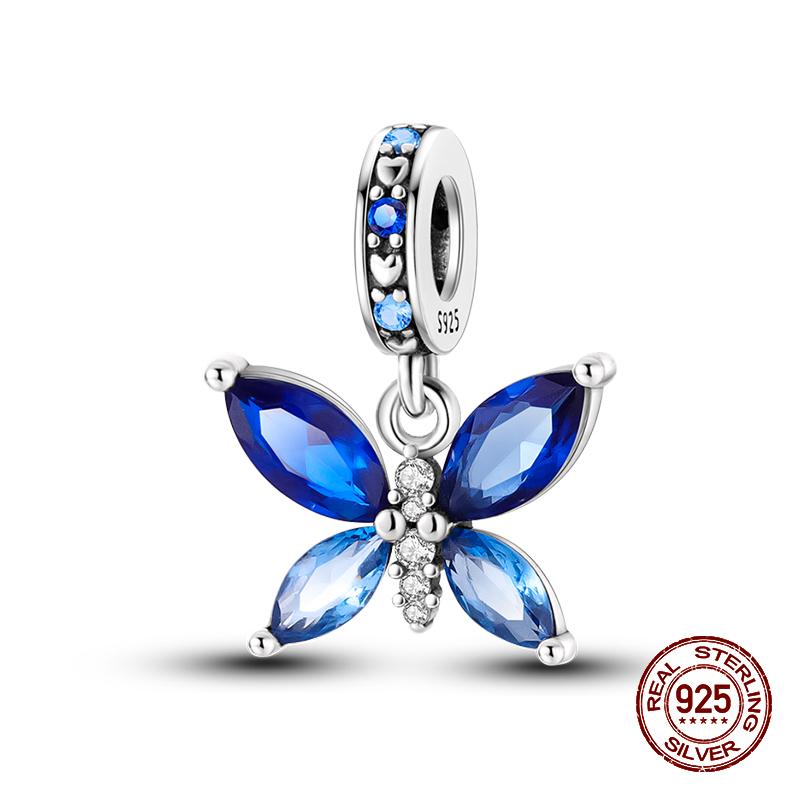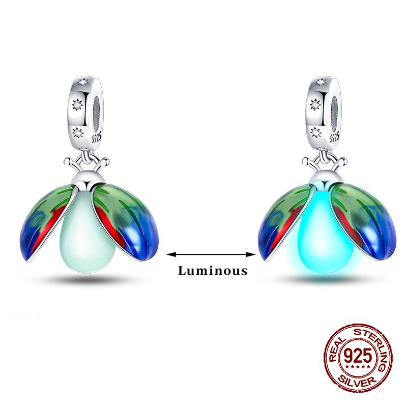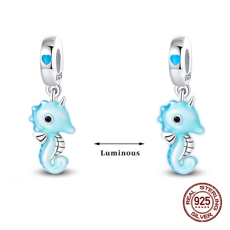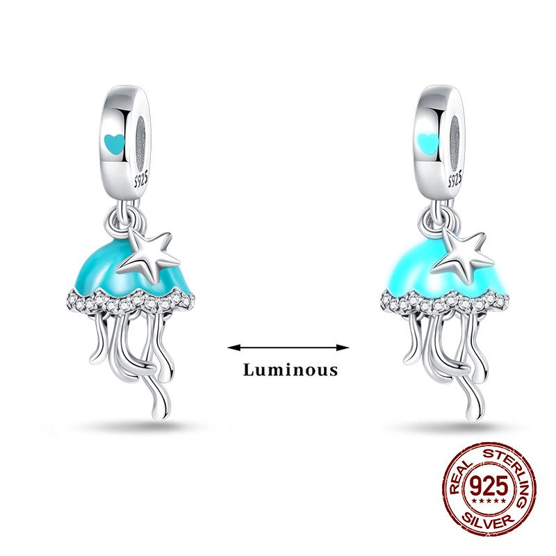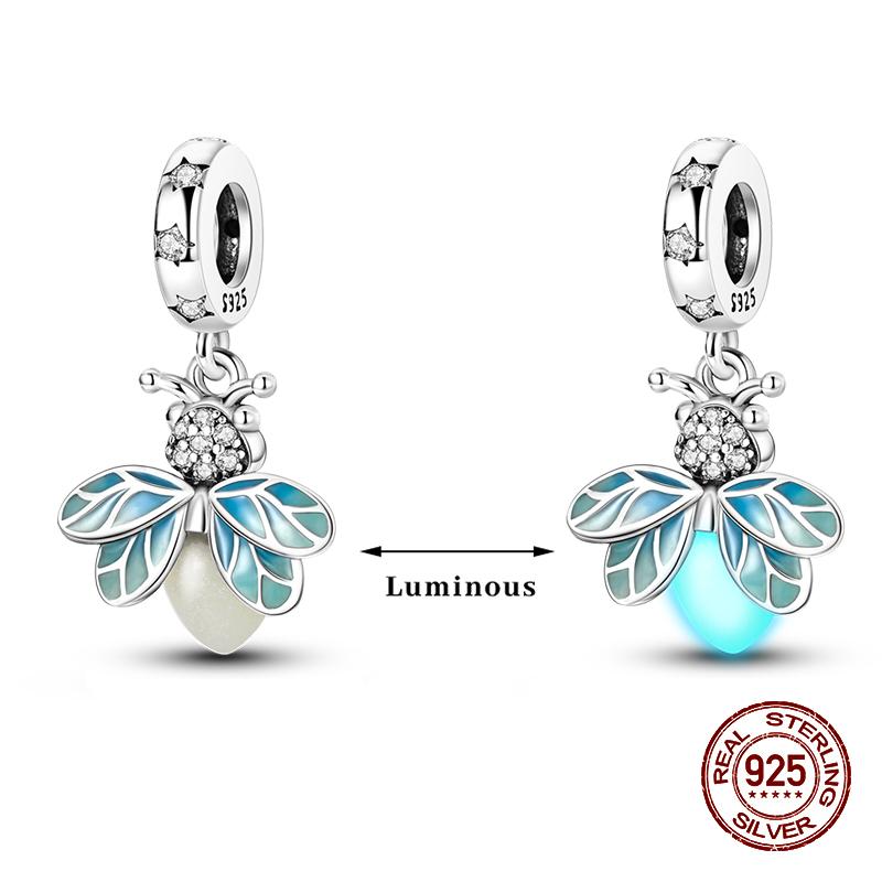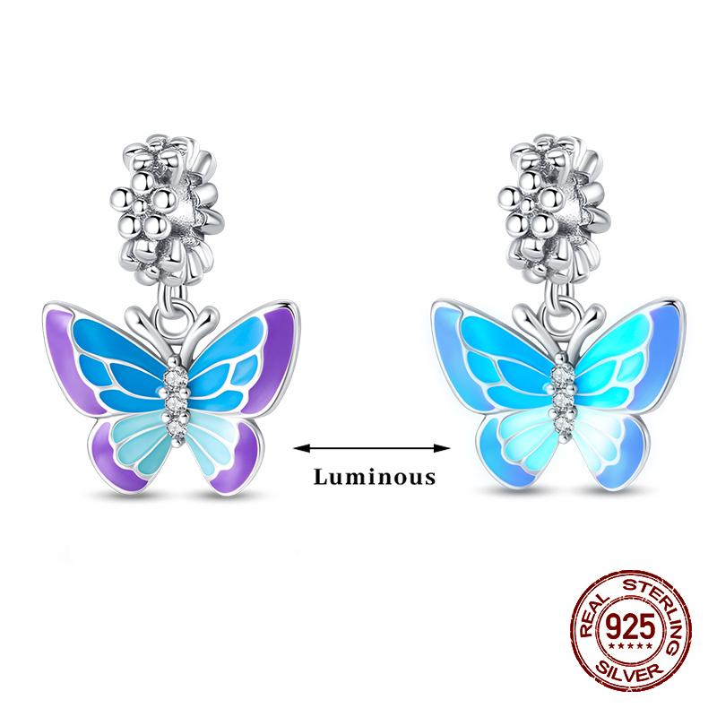 100% Стерлингового Серебра 925 Синий Океан Животное Светящиеся Бабочки Краб Шарм Бусины Подходит 925 Оригинальных Браслетов Роскошные Ювелирные Изделия DIY