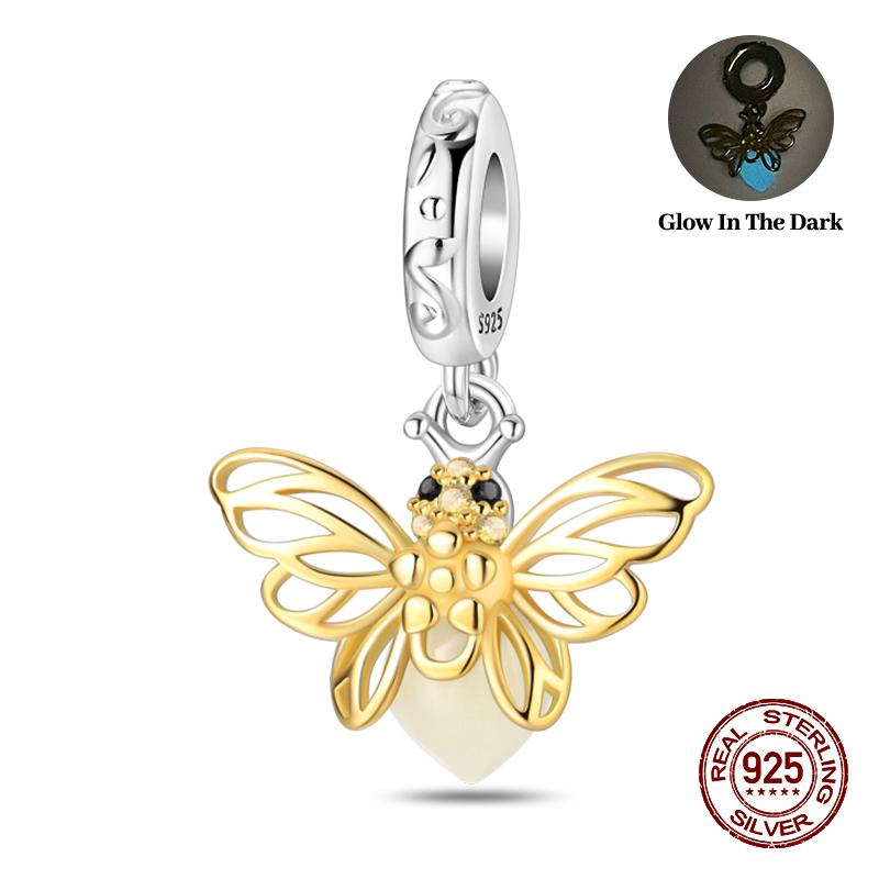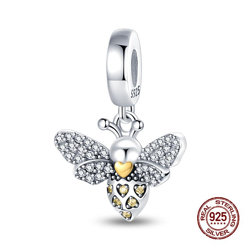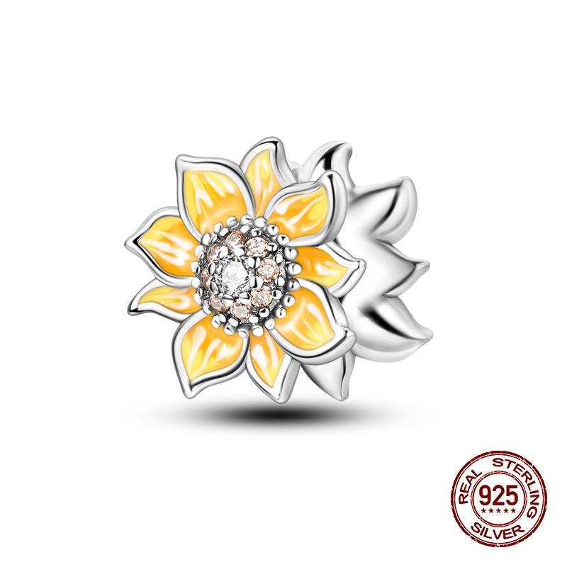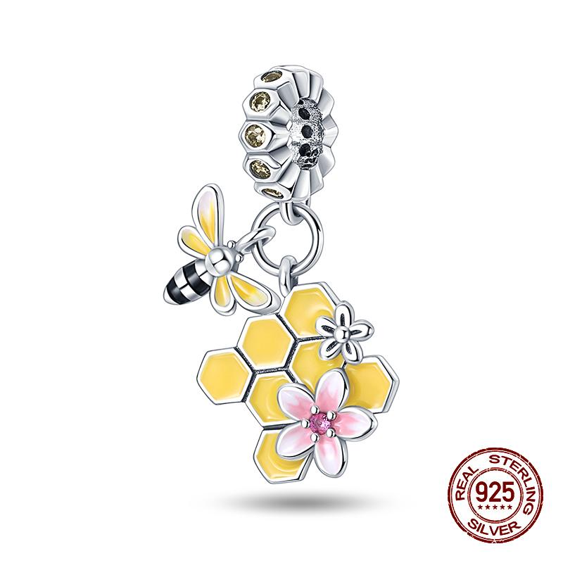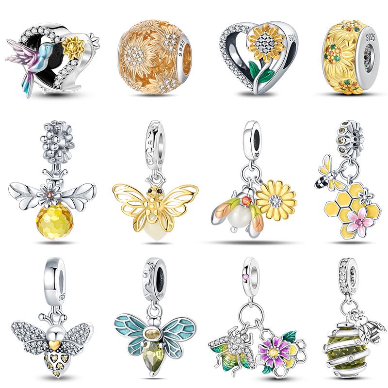 100% стерлингового серебра 925 пробы Подсолнух светящийся драгоценный камень пчелы подвески бусины подходят 925 оригинальные браслеты DIY ювелирные изделия выпускной подарок