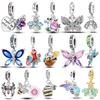 Новые 925 пробы стерлингового серебра попугай бабочка фламинго животные подвески бусины подходят 925 оригинальный браслет изысканные DIY украшения на день рождения
