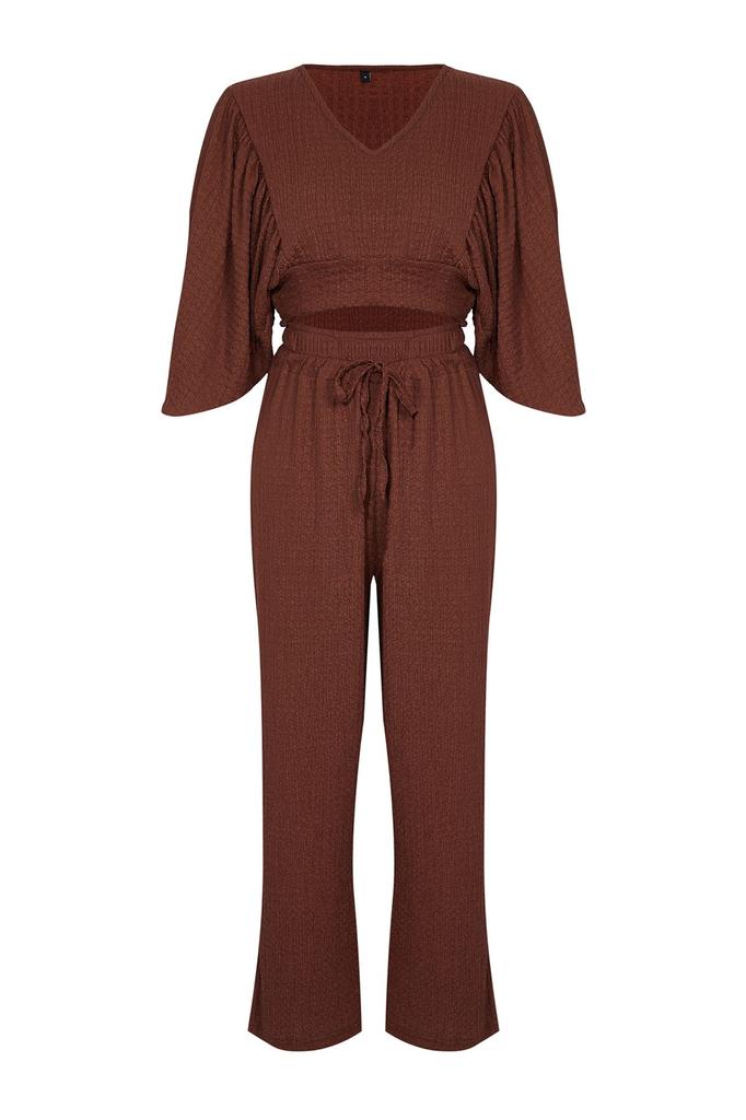 Женский стильный комплект нижнего белья, темно-коричневая фактурная ткань, свободный удобный крой, гибкий трикотажной комплект нижнего белья