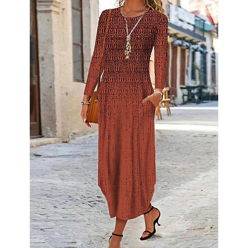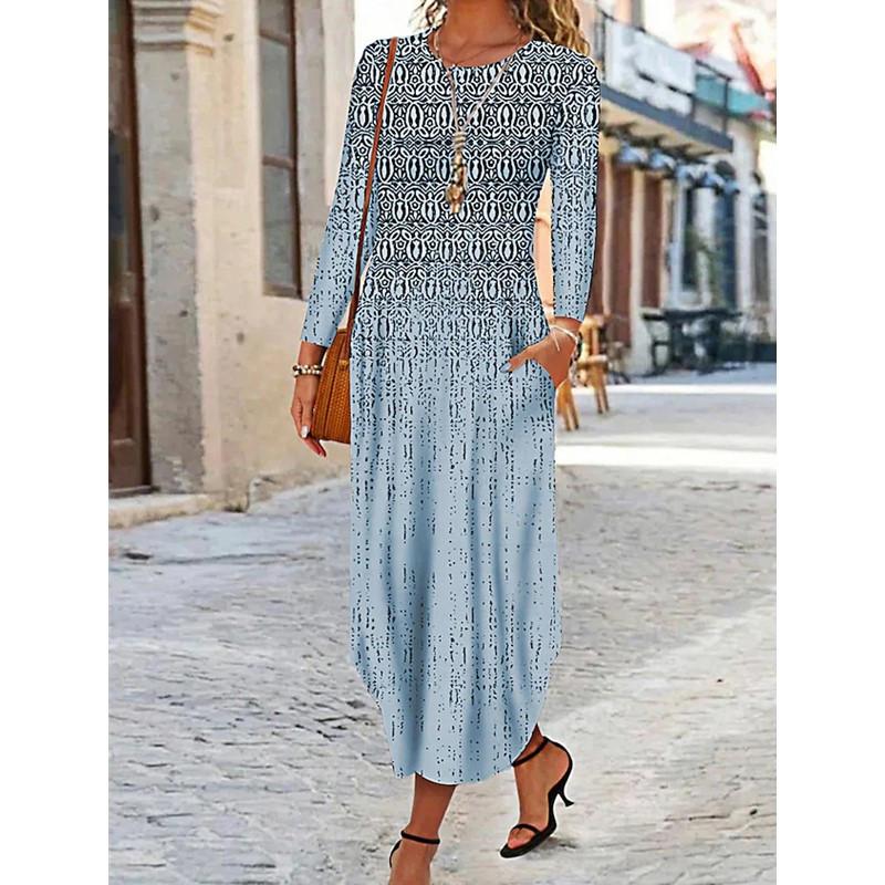 Женские модные повседневные платья с длинным рукавом и круглым вырезом с карманом и принтом