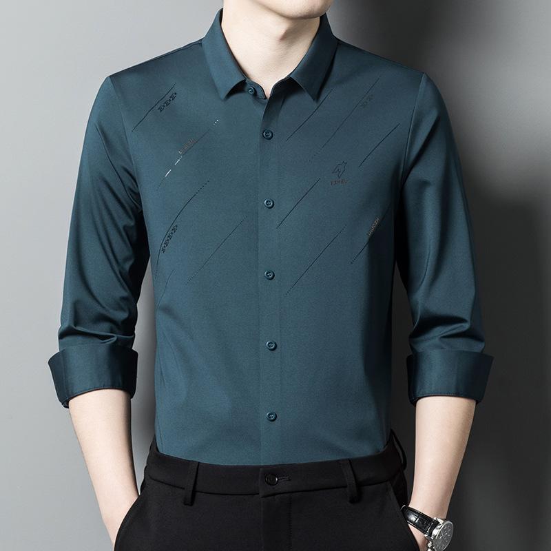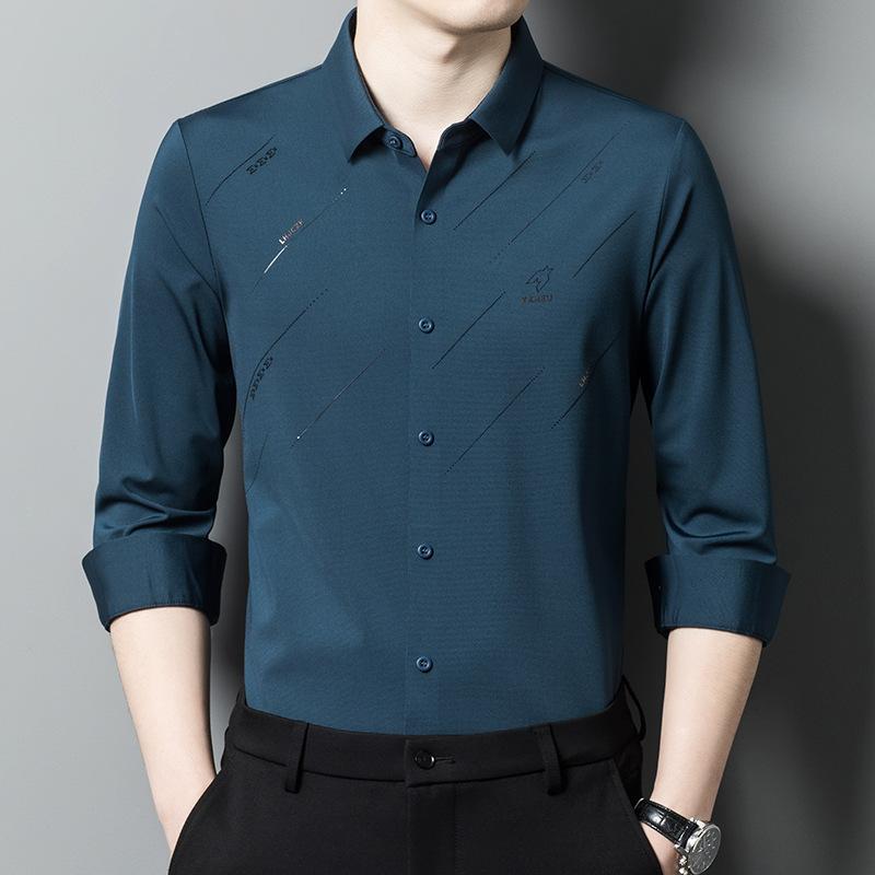 Новая осенняя одежда для молодых и мужчин среднего возраста. Рубашки с длинными рукавами. Деловые повседневные тонкие модные свободные рубашки из ледяного шелка для мужчин.