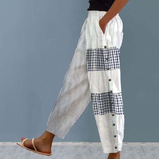 Модные женские брюки в клетку с цветными блоками в стиле пэчворк, резиновая талия на щиколотке, большие размеры