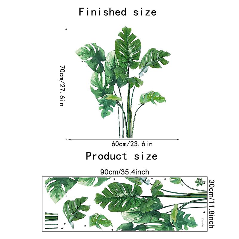 Большие наклейки на стену с изображением листьев тропических зеленых растений для домашнего декора в виде пальмы