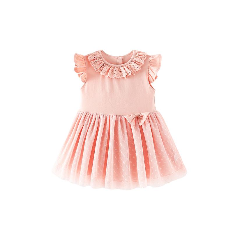 Летнее платье для девочек начальной и средней школы, однотонное хлопковое платье принцессы с короткими рукавами для маленьких девочек для детей