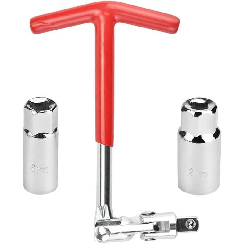 Набор ключей для свечей зажигания: Нескользящая Т-образная конструкция с гибкой головкой, вращающейся на 360 градусов, идеально подходит для большинства автомобилей или мотоциклов.