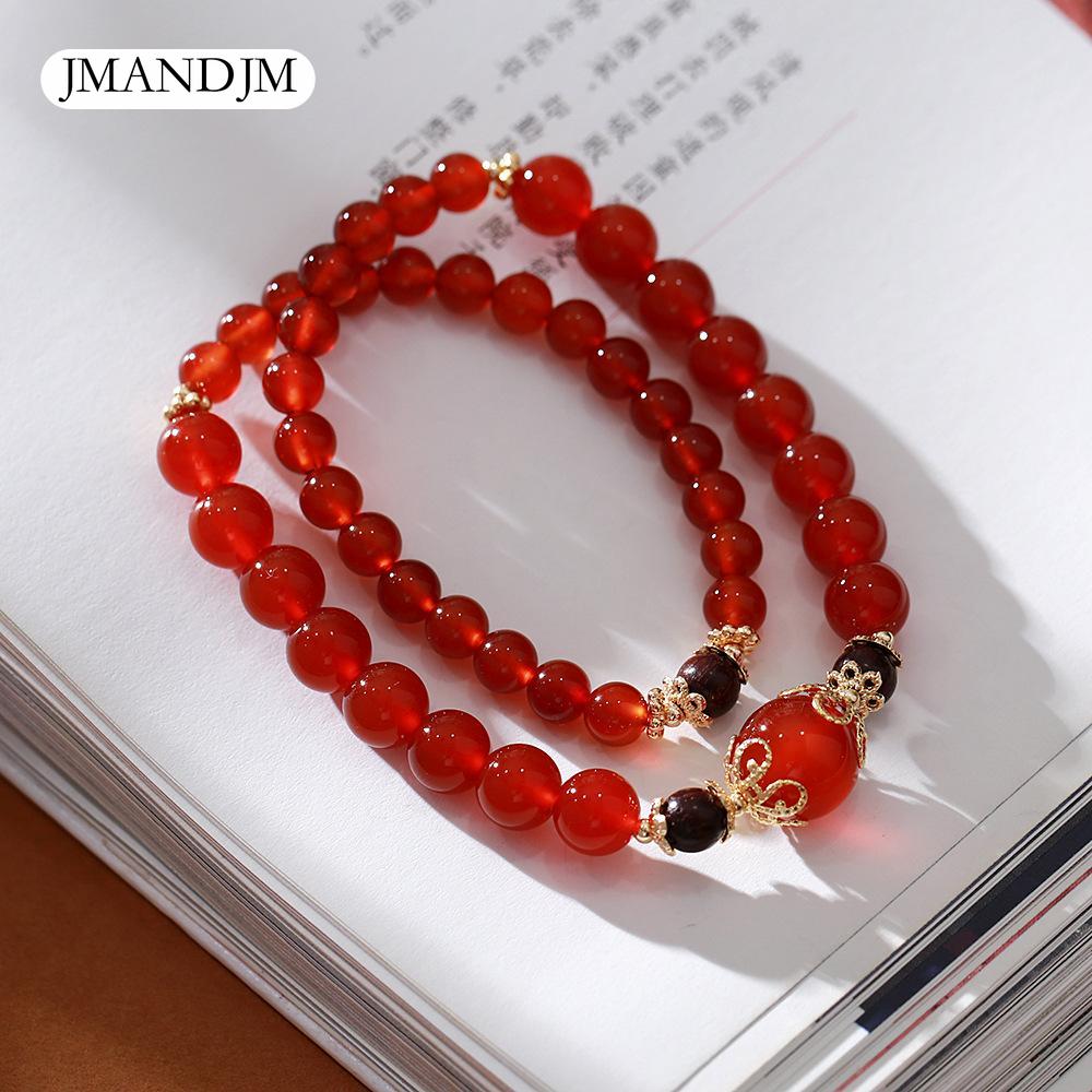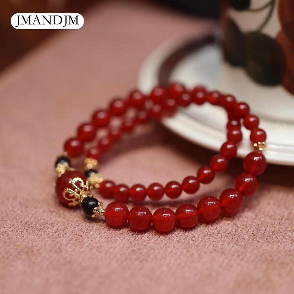 Браслет Браслет из натурального красного агата Женский год рождения Халцедоновый агат Многокольцевой браслет с кристаллами Мужской и женский Весна и лето
